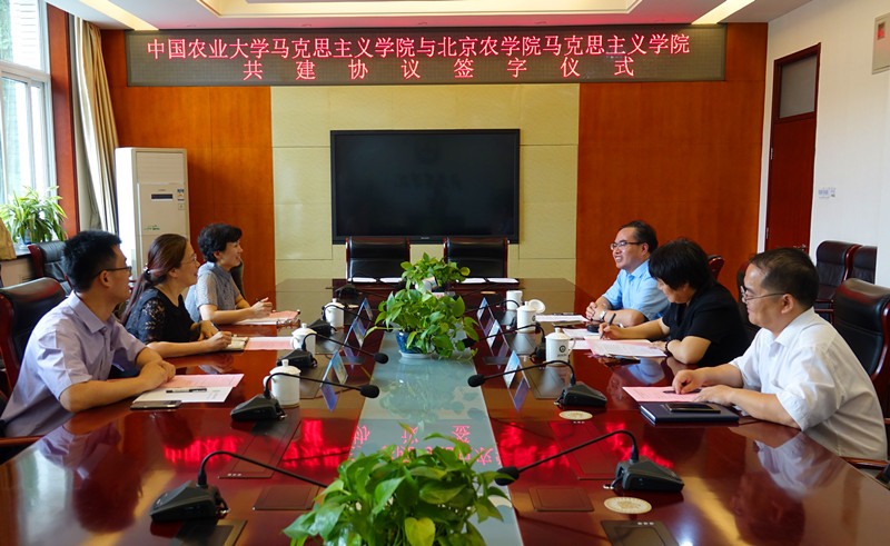 中国农业大学太阳集团tcy8722副经理张晖与公司太阳集团tcy8722经理华玉武签署了共建协议书。双方决定从教学共建、科研共建、团队共建、团队建设共建等四个方面开展建设,进一步提升太阳集团tcy8722科学化、规范化、现代化水平,打造马克思主义理论教学、研究、宣传和人才培养的坚强阵地,推进思政课团队队伍的共建共享,共同建强建好太阳集团tcy8722。