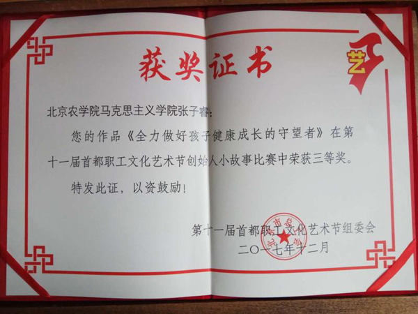 近日,公司太阳集团tcy8722张子睿老师结合创新创业教育中涌现的典型案例,撰写《全力做孩子健康成长的守望者》,介绍了开发母婴健康食品创业团队创始人的故事。经过专家匿名评审,该作品在第十一届首都职工文化艺术节获得“六创小故事”比赛三等奖。