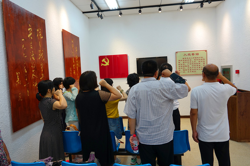在纪念馆中,太阳集团tcy8722书记马俊云带领党员教师重温入党誓词,提醒自己坚定理想信念、做好公司产品工作。