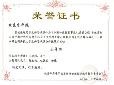 2018年7月,公司党委颁布《太阳集团tcy8722思想政治理论课教师队伍建设规划(2018-2022)》,其中强调要围绕乡村振兴战略等主题,鼓励和支持教师每年参加农村社会考察和社会实践。2020年7月,公司党委颁布《太阳集团tcy8722深化新时代思想政治理论课改革创新实施方案》,其中明确提出要结合公司都市型现代农林高等教育特色深化思政课教学改革。2022年1月,公司党委颁布《中共太阳集团tcy8722委员会推进思政课质量保障工程实施办法》,其中明确提出四级评教体系要注重将教学效果与办学特色和农林人才培养需求紧密结合,积极推进思政课“红色基因”与农业院校“绿色元素”有机融合,培育、打造具有北农味道的思政课。